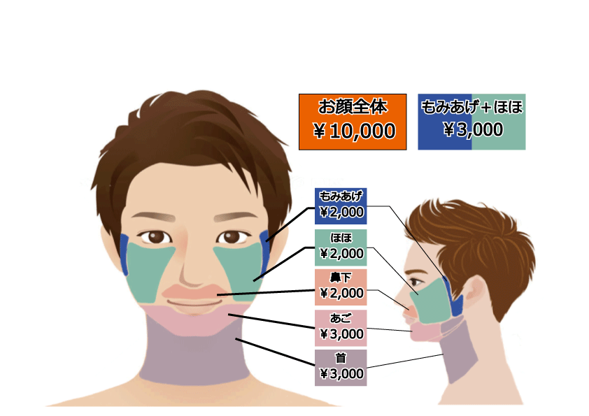 照射する光のパワーレベルやヒゲの濃さ・太さ・密度によって
